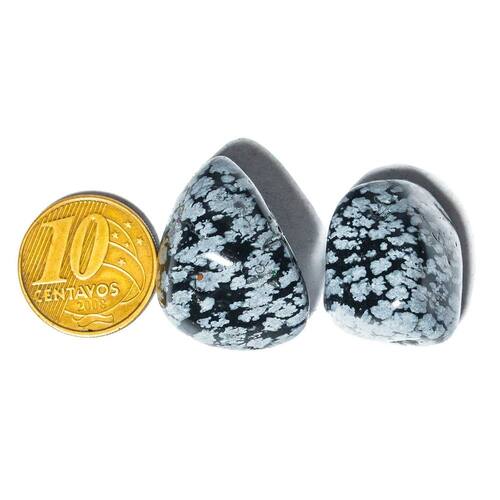 Obsidiana Flocos de Neve Rolada 30–45mm | Pedra Natural Importada Pedra autêntica e importada dos EUA, formada por lava vulcânica resfriada com água e sílica. A Obsidiana Flocos de Neve possui aparência marcante com fundo preto e cristais brancos que lembram neve. Ideal para colecionadores, decoração energética, artesanato ou uso esotérico.