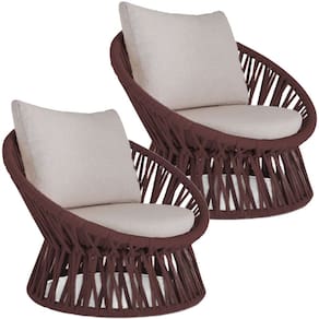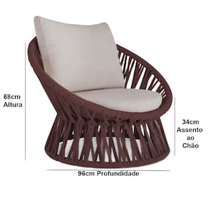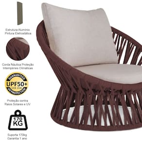 02 Poltrona Área Externa Monza Alumínio Pintura Corda Náutica - Marrom