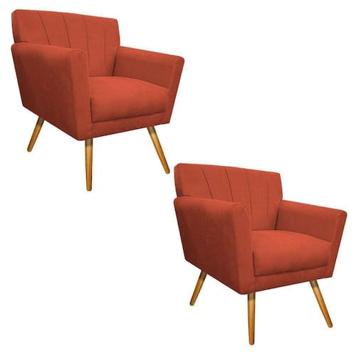 Gostaria de um móvel que trouxesse mais elegância e sofisticação para o seu lar? O Kit 02 Poltronas Laura é sua melhor opção! Com característica moderna e com acabamento de qualidade, este produto atenderá suas expectativas! Não perca essa oportunidade e adquira já a sua! Especificações Técnicas da Poltrona Decorativa Laura: - Altura: 85 cm; - Largura: 70 cm; - Profundidade: 63 cm; - Altura do Assento: 50 cm; - Largura do Assento: 50 cm; - Altura do Braço: 65 cm; - Profundidade do Assento: 45 cm; - Largura do Encosto: 70 cm; - Espessura do Assento: 14 cm; - Altura do Encosto: 41 cm; - Espessura do Encosto: 5 cm; - Altura dos Pés: 30 cm; - Peso: 20 kg. - Peso Suportado: 120 kg. Diferenciais da Poltrona Decorativa Laura: - Material da Estrutura: fabricado com Madeira Pinus e Eucalipto , e alguns detalhes em MDF; - Tipo de Assento: estofado e com espuma de densidade D-26; - Tipo de Encosto: estofado e com espuma de densidade D-18; - Detalhes dos Pés: acompanha kit de pés (4 pés para cada produto) de madeira, no estilo Palito , com alta resistência; - Volumes: nessa compra você receberá DUAS POLTRONAS. ATENÇÃO: a transportadora pode entregá-las juntas ou separadas, nesse último caso, inclusive com dias de diferença na . Recomendações de limpeza: -Limpar com flanela limpa e seca. Não molhar o móvel e não expor em lugar úmido ou próximo de fontes de calor. Observações Importantes: - As imagens ambientadas são meramente ilustrativas e podem apresentar itens que não compõe o produto; - Objetos decorativos que aparecem na foto não acompanham o produto; - As cores do produto podem variar de acordo com o monitor, a iluminação do ambiente, ou sua percepção visual; - A Poltrona Decorativa Laura chegará montada para você, bastando rosquear os pés; -; -. (); - .
