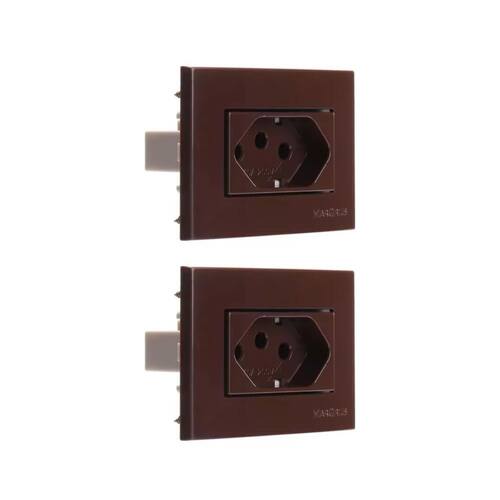 02 Tomada Para Moveis Margirius 2P+T Marrom 10A 250V Nbr 14136 Tomada para embutir em madeira, MDF, MDP ou derivados. Utilizada principalmente na marcenaria, ideais para peças planejadas como armários, cabeceiras, painéis, bancadas, balcões de cozinha, mesas para escritório, entre outras
