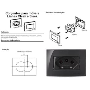 Tomada para embutir em madeira, MDF, MDP ou derivados. Utilizada principalmente na marcenaria, ideais para peças planejadas como armários, cabeceiras, painéis, bancadas, balcões de cozinha, mesas para escritório, entre outras