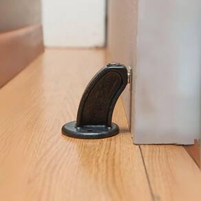 O Trava Porta Magnético é instalado rapidamente com adesivos super resistentes, sem a necessidade de fazer furos no piso e na porta, porém caso queira ou haja necessidade da fixação por parafusos o produto já vem com os furos para fixação dessa maneira na base.