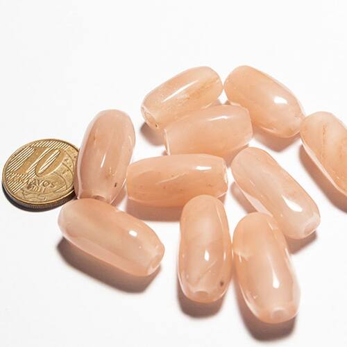 Pedra Quartzo Goiaba Furada Longitudinal – 20 a 25 mm Tipo B para Montagem de Artesanato Transforme suas criações artesanais com a beleza suave e natural da Pedra Quartzo Goiaba! Essa peça lapidada em formato de barril, com furo de 3 mm, é perfeita para quem busca elegância em projetos como pingentes, colares, pulseiras e guias. Especificações do Produto: Nome da Pedra: Quartzo Goiaba Natural Cor: Rosa Goiaba (imagem ilustrativa) Corte: Pedra rolada comum, com furo horizontal ou longitudinal para passagem de fios e cordões Claridade: Opaca, com brilho suave Tamanho: Entre 20 e 25 mm (varia conforme o estoque) Quantidade: 3 pedra por anúncio Destaques: Perfeita para Montagem de Joias Artesanais: A Pedra Quartzo Goiaba é ideal para criar peças únicas como colares, pulseiras e guias, agregando um toque de charme e exclusividade aos seus acessórios. Propriedades Energéticas do Quartzo Goiaba: Conhecido por trazer equilíbrio emocional, calma e amor, o Quartzo Goiaba é muito apreciado tanto por sua cor suave quanto por suas vibrações positivas. Acabamento de Qualidade: Cada pedra é cuidadosamente lapidada e possui um furo de 3 mm, proporcionando praticidade na criação de joias e acessórios artesanais. Informações Adicionais: Imagem Ilustrativa: A tonalidade e o brilho podem variar levemente devido à iluminação e ao lote da pedra. Prazo de Produção: Em virtude da alta demanda, o tempo de lapidação e furação pode variar de 3 a 15 dias. Compre apenas se concordar com esse prazo. Benefícios do Quartzo Goiaba: O Quartzo Goiaba não só encanta pela sua tonalidade rosa delicada, como também é valorizado por suas propriedades de cura emocional. Ele promove equilíbrio e bem-estar, tornando suas joias não apenas esteticamente agradáveis, mas também carregadas de significado. Aplicações Artesanais: Montagem de Pingentes, Colares e Pulseiras: O formato versátil e a cor encantadora da Pedra Quartzo Goiaba a tornam ideal para criar acessórios sofisticados e energéticos. Amuletos e Guias: Utilize essa pedra em suas criações espirituais e energéticas, levando suas propriedades tranquilizantes e curativas para o dia a dia de quem a usa. Garanta Já Sua Pedra Quartzo Goiaba! Adquira agora a sua Pedra Quartzo Goiaba Furada e eleve suas criações artesanais a um novo nível de beleza e significado. Seja para projetos de joias ou acessórios energéticos, essa pedra é perfeita para quem busca estilo, energia e originalidade. Marca: CristaisdeCurvelo