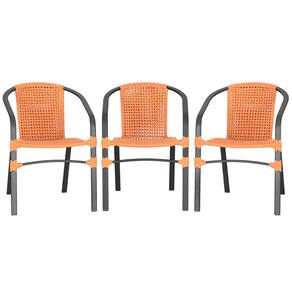 03 Cadeira Floripa Aluminio Trama - Laranja