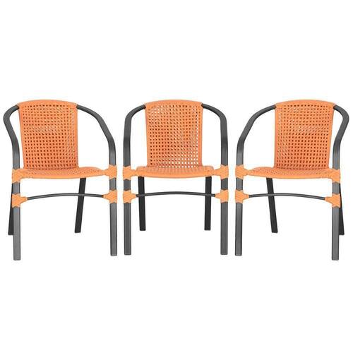 03 Cadeiras Floripa Alumínio Pintura Preta Trama Terra Cota