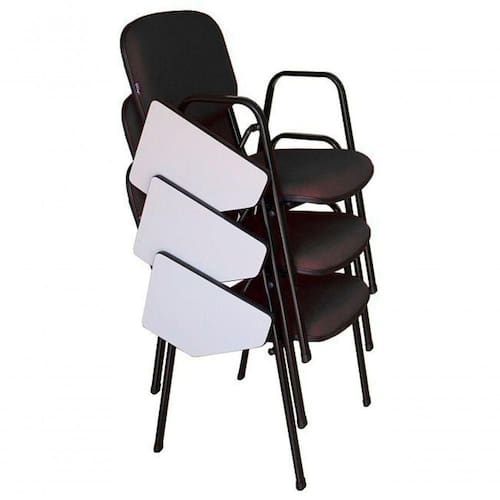 Peso da cadeira: 6,40kg - Empilhável com até 7 cadeiras sem a prancheta