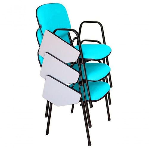 Peso da cadeira: 6,40kg - Empilhável com até 7 cadeiras sem a prancheta