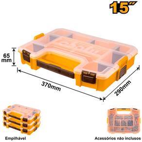 Organizador ideal para guardar miudezas, desde parafusos, buchas, bits, peças hidraulicas, itens de costura e até itens de pesca. Diferencial que podem ser empilhadas e conectadas uma na outra facilitando o transporte e evitando quedas e possiveis aberturas do organizador durante o transporte em um automóvel ou caminhão.