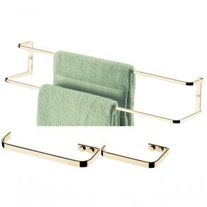 Kit Banheiro Lavabo Dourado 03 Peças Future Porta Toalha Duplo 60cm,toalheiro Rosto 22 Cm E Papeleira Kit de acessórios para banheiro DOURADO contendo 3 peças conforme descrição abaixo:
