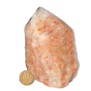 Nome: Pedra do Sol Natural (Gold Stone) Cor: Laranja vibrante com pigmentos vermelhos cintilantes Corte: Pé e Bico Polido Claridade: Vitral, sem transparência, ideal para Decorações Medidas: 7 a 11cm (varia conforme o estoque) Peso: 300 a 400g (varia conforme o estoque) Origem: Lapidação em Curvelo, MG; pedra de garimpo natural