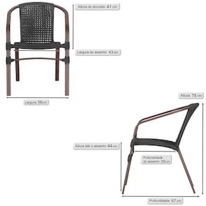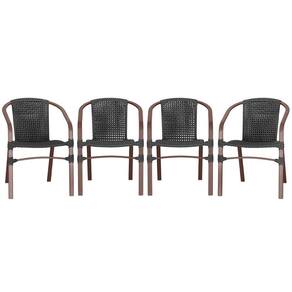 04 Cadeiras Floripa Alumínio Pintura Marrom Trama Preto