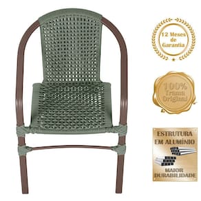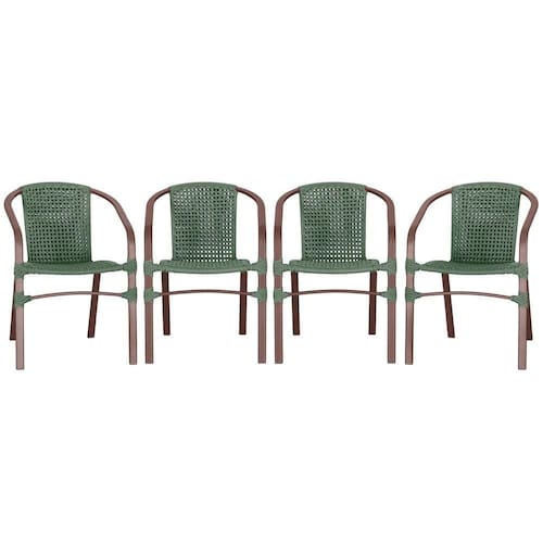 04 Cadeiras Floripa Alumínio Pintura Marrom Trama Verde