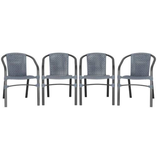 04 Cadeiras Floripa Alumínio Pintura Preta Trama Prata