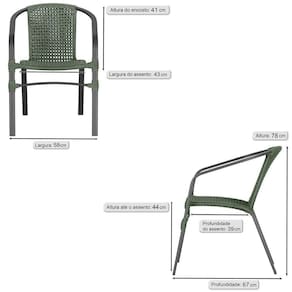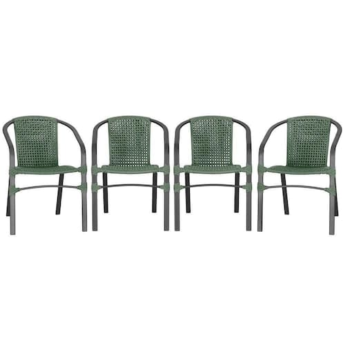 04 Cadeiras Floripa Alumínio Pintura Preta Trama Verde