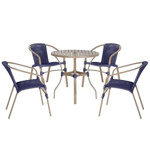 04 Cadeiras Floripa E Mesa Roma 100cm Fendi Trama Azul