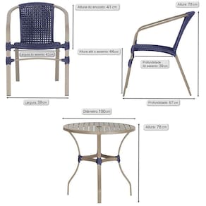 Composto por cadeiras de aluminio tramadas em corda nautica e uma elegante mesa com tampo ro, esse conjunto une sofisticacao e resistencia em cada detalhe.