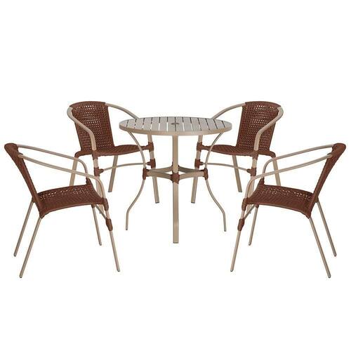 04 Cadeiras Floripa E Mesa Roma 100cm Fendi Trama Marrom
