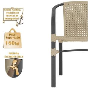 Composto por cadeiras de aluminio tramadas em corda nautica e uma elegante mesa com tampo ro, esse conjunto une sofisticacao e resistencia em cada detalhe.