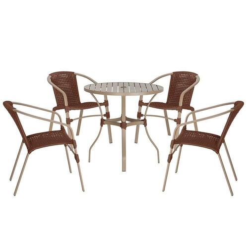 04 Cadeiras Floripa E Mesa Roma 80cm Fendi Trama Marrom
