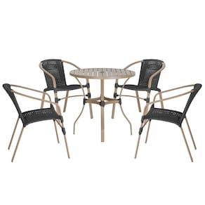 04 Cadeiras Floripa E Mesa Roma 80cm Fendi Trama Preto