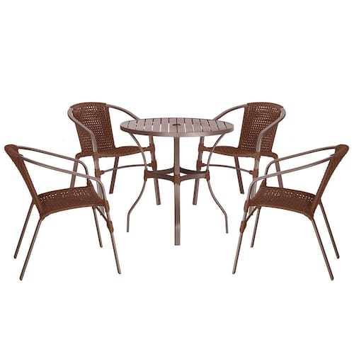 04 Cadeiras Floripa E Mesa Roma 80cm Marrom Trama Marrom