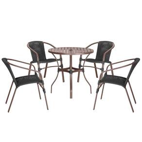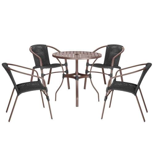 04 Cadeiras Floripa E Mesa Roma 80cm Marrom Trama Preto