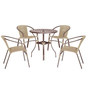 04 Cadeiras Floripa E Mesa Roma 80cm Marrom Trama Rami