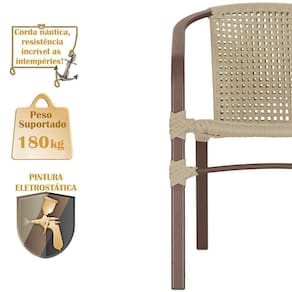 Composto por cadeiras de aluminio tramadas em corda nautica e uma elegante mesa com tampo ro, esse conjunto une sofisticacao e resistencia em cada detalhe.