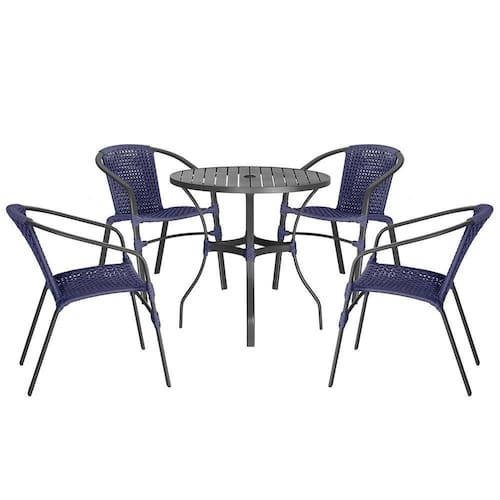 04 Cadeiras Floripa E Mesa Roma 80cm Preta Trama Azul