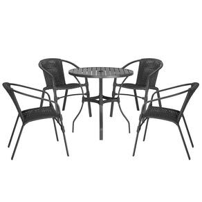 04 Cadeiras Floripa E Mesa Roma 80cm Preta Trama Preto