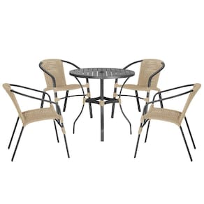 04 Cadeiras Floripa E Mesa Roma 80cm Preta Trama Rami