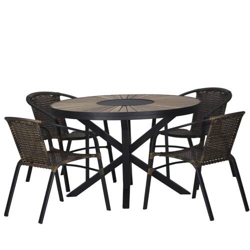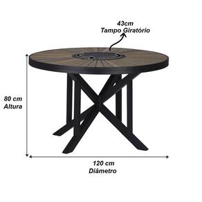 Conteúdo da Embalagem: 01 Mesa Atenas com Prato Tampo Giratório em Alumínio (com tampo de madeira) 04 Cadeiras Floripa em Alumínio Pintado