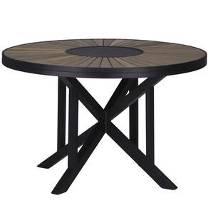 01 Mesa Atenas com Prato Tampo Giratório em Alumínio (com tampo de madeira)
