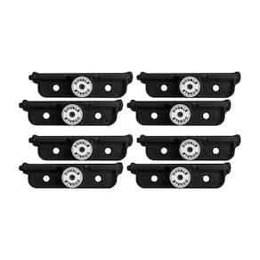 Ficha Técnica: Uso Indicado: Porta de Enrolar Comercial - Porta de Aço Categoria: Fechadura Porta de Aço de Enrolar Conteúdo da Embalagem: Par de travas (Direita e esquerda) + chaves + acabamento + parafusos e porcas Material: Ferro Fundido Dimensões: 16 cm (comprimento) x 4,1 cm (largura) x 1,5 cm (altura) - distância entre os furos: 8,5 cm