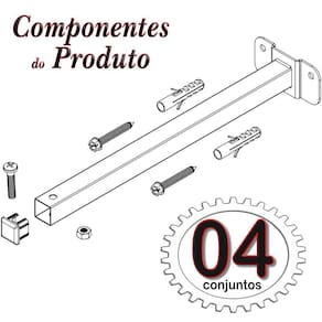 (04 CONJUNTOS) DE SUPORTE PARA REFLETOR - BASE PAREDE OU TETO - BRAÇO com 1 metro
