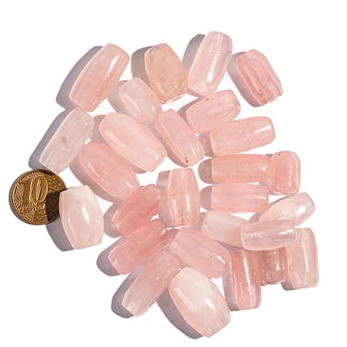05 Barril Furado Longitudinal Pedra Quartzo Rosa 20mm Tipo B