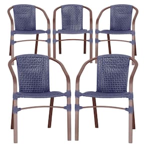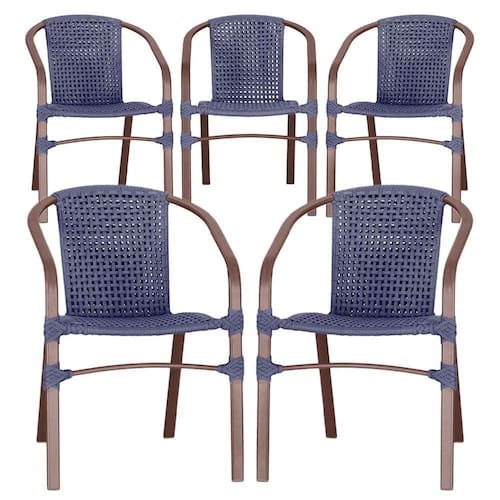 05 Cadeiras Floripa Alumínio Pintura Marrom Trama Azul