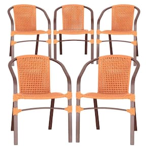 05 Cadeiras Floripa Alumínio Pintura Marrom Trama Terra Cota