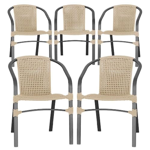 05 Cadeiras Floripa Alumínio Pintura Preta Trama Rami