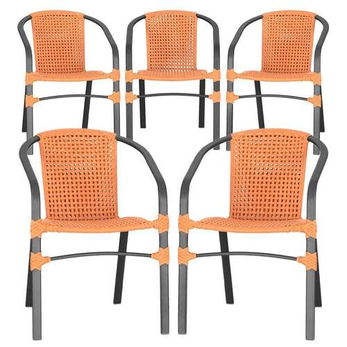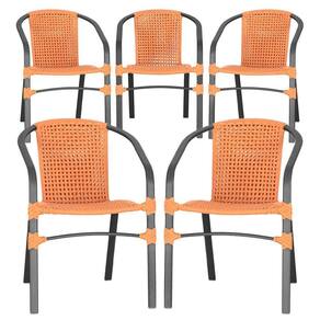05 Cadeiras Floripa Alumínio Pintura Preta Trama Terra Cota