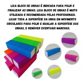 05 Lixas Polidora De Unha Bloco Mágico manicure Super lixa ZEM de acabamento para unhas A cor pode variar conforme o , mas a preferencia é sempre rosa. Você vai comprar uma lixa polidora, não é uma lixa para reduzir ou aparar as pontas das unhas, por isso ela é bem fininha. Ela é aplicada na face da unha, região onde se aplica o esmalte. Passe a lixa na face da unha, tenha certeza que você lixou bem, até os cantos também. Você vai perceber uma poeira leve bem fininha branca na lixa e na unha. Você não vai notar nenhuma diferença visível ainda. Você apenas lixou as partes mais altas, irregulares do relevo da unha. Valor para - 05 unidades Marca: Não Informado