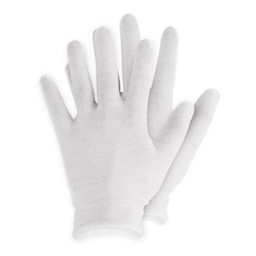 Luvas de trabalho de algodão branco, tamanho flexível se encaixa a maioria dos adultos.