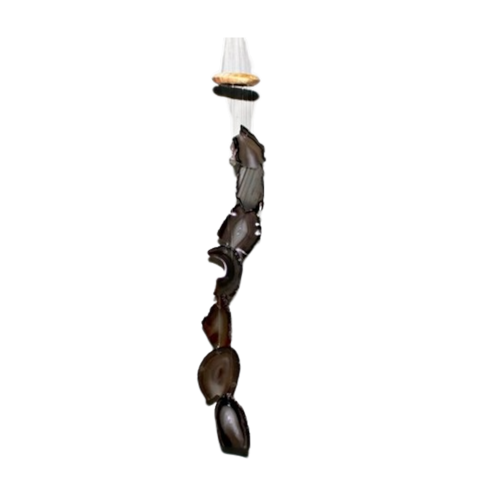 Mensageiro dos Ventos de Ágata Natural - Paz, Tranquilidade e Energia Positiva Leve harmonia para o seu lar com o Mensageiro dos Ventos feito com chapas de ágata natural. Este belo item, além de decorar sua casa, atua na purificação energética, separando energias de ambientes diferentes e promovendo paz e tranquilidade. Ideal para varandas, sacadas ou entradas, o sino interage com o vento e cria um som suave e relaxante que eleva a energia do local. Principais características: Pedras: Ágata Natural Cor: Cinza (foto ilustrativa) Corte: Chapas polidas de ambos os lados Claridade: Translúcido Medidas: De 6 a 9 cm (em média) Peso: Aproximadamente 264 gramas Origem: Chapada Diamantina, Brasil Como funciona?Ao ser tocado pelo vento, o mensageiro filtra as energias negativas e deixa passar apenas as vibrações positivas. Muito utilizado em práticas como o Feng Shui e no Budismo, o som gerado pelas chapas de ágata não apenas renova o ambiente, mas também interage com a sua energia pessoal, ajudando a acalmar o espírito. Atenção: Este produto é feito com chapas de ágata aproveitadas, com formatos irregulares e imperfeições. Isso não compromete sua funcionalidade ou beleza, mas é importante ler e compreender que essas variações fazem parte do design único da peça. Não haverá trocas devido às características mencionadas. Benefícios do Mensageiro dos Ventos: Filtra energias negativas Promove calma e serenidade Sonoridade suave e relaxante Ideal para equilibrar a energia de ambientes Invista em um item único que harmoniza sua casa e suas energias de forma elegante e funcional! Marca: CristaisdeCurvelo