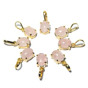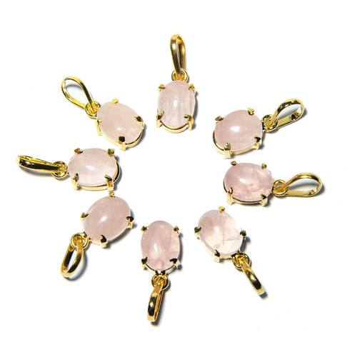 Mini Ponto de Luz Quartzo Rosa | Cabochão Liso na Garra Um pingente delicado, elegante e repleto de significado. O Quartzo Rosa é conhecido como a pedra do amor universal — irradiando ternura, regeneração emocional e equilíbrio afetivo. Com corte cabochão liso e montagem em garra, este pingente é ideal para quem busca suavidade, conexão emocional e um toque especial de beleza no dia a dia. O que irá receber:\n5 pingente com pedra natural de Quartzo Rosa\nDetalhes do Pingente:\nPedra: Quartzo Rosa Natural\nFormato: Mini cabochão liso oval\nTamanho da pedra: Aproximadamente 10 x 8 mm (variações naturais podem ocorrer)\nMontagem: Garra com presilha dourada\nPeso estimado da pedra: Cerca de 6 quilates\nBrilho: Suave e leitoso, com aspecto translúcido delicado\nOrigem da montagem: Curvelo - MG\nImportante: Pedra natural — tonalidades podem variar do rosa claro ao rosado suave, tornando cada peça única\nSignificado do Quartzo Rosa: O Quartzo Rosa é símbolo do amor, da paz e da harmonia emocional. Atua diretamente no chakra do coração, promovendo empatia, perdão e autoconhecimento. É muito utilizado para aliviar mágoas, fortalecer relacionamentos e atrair boas vibrações emocionais. Observações:\nProduto artesanal: pequenas variações de pedra e acabamento são normais e valorizam a autenticidade da peça\nFotos ilustrativas: as cores e detalhes da pedra podem variar conforme o lote disponível\nPresenteie com amor e suavidade Este pingente é mais do que uma joia — é uma fonte de energia afetuosa e acolhedora. Perfeito para quem valoriza a delicadeza das pedras naturais e deseja carregar consigo uma vibração amorosa. Ideal para presentear alguém especial ou para se conectar com o amor-próprio. Marca: CristaisdeCurvelo