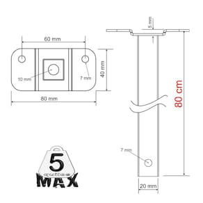(05 CONJUNTOS) DE SUPORTE PARA REFLETOR - BASE PAREDE OU TETO - BRAÇO com 80 cm