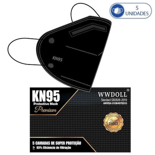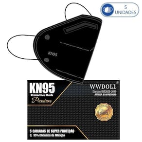 05 Unidades De Máscaras Kn95 Premium Pretas Wwdoll