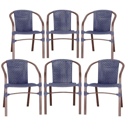 06 Cadeiras Floripa Alumínio Pintura Marrom Corda Nautica Tr Azul