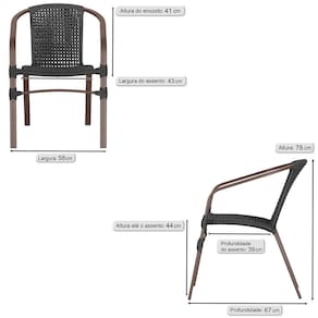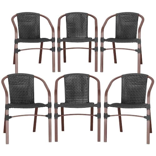 06 Cadeiras Floripa Alumínio Pintura Marrom Corda Nautica Tr Preto