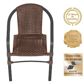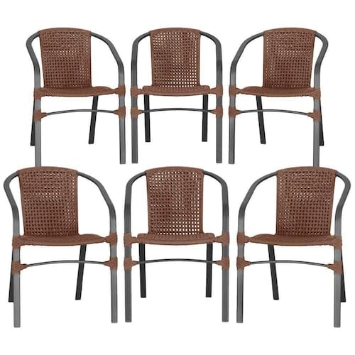 06 Cadeiras Floripa Alumínio Pintura Preta Trama Marrom