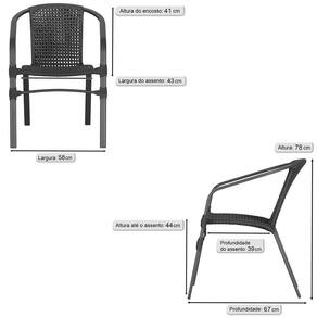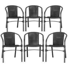 06 Cadeiras Floripa Alumínio Pintura Preta Trama Preto